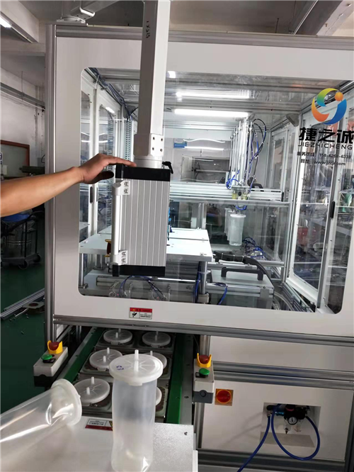 設(shè)備用于引流袋與塑料蓋的焊接及檢測,人工上料,自動焊接與自動通氣檢測等功能。加工過程自動化進行,更加快捷高效,節(jié)省成本。